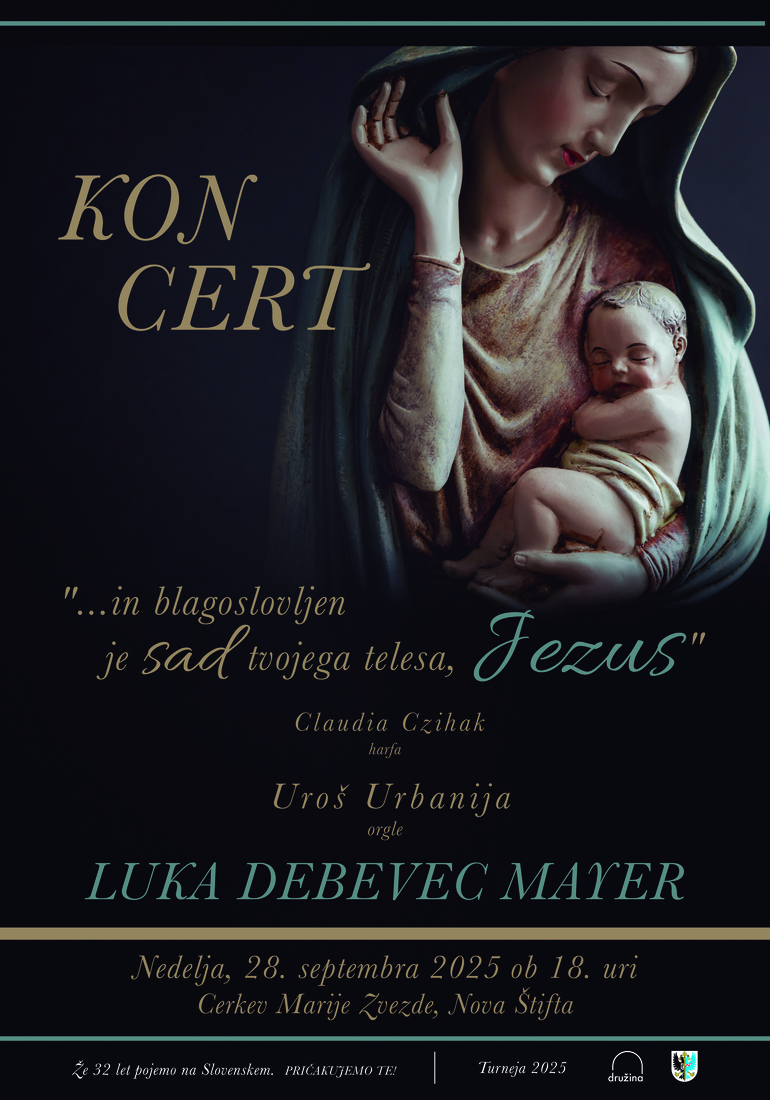 Župnija Nova Štifta v sodelovanju z Občino Gornji Grad vabi na koncert Luke Debevca Mayerja, ki bo v nedeljo, 28. septembra 2025, ob 18. uri v cerkvi Marije Zvezde v Novi Štifti.