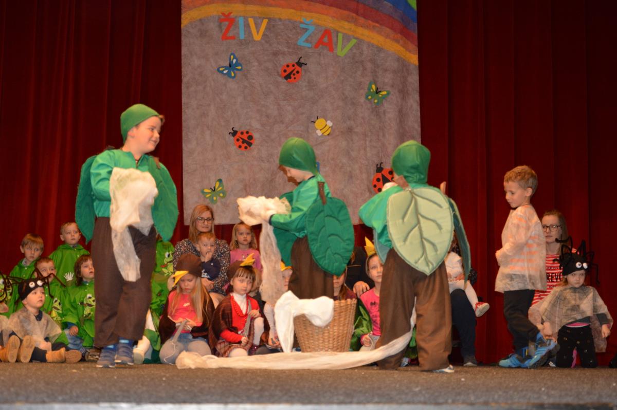 Najmlajši so svoje nastope povezali v zgodbo o Vidku in njegovi srajčici, ki so jo sami pripovedovali in dopolnili s plesnimi točkami. Šolarji so pripravili zabavne točke ter hudomušno povezovali program. Nastopili so tudi folklorniki, skupini Mali in veliki facki ter šolski otroški in mladinski pevski zbor.