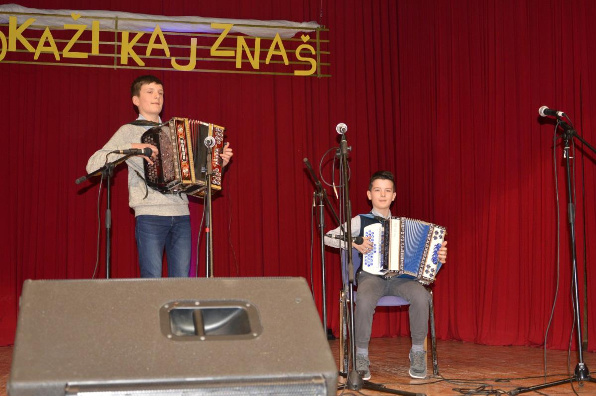 Najmlajši nastopajoči na prireditvi se je odrezal odlično. To je bil harmonikar Amadej Kolenc, ki bo v kratkem praznoval deseti rojstni dan, nastopil pa je sam, v družbi Klemna Lamprečnika in v družbi članic Dua Opala in Udarnih muzikantov. Ti dve zasedbi sta tudi drugače presenetili, saj sta odigrali vsaka zase in nato še skupno skladbo in malo premešali adute. Za dobro voljo so poskrbeli še Florjanski fantje in Ansambel Žarek. Glasbenikom so se pridružili še pevci. Nastopili so Fantje treh vasi in Tona vokala. Oboji so z izborom skladb in ubranim petjem poželi dolga aplavza. Da pa se ne bi samo pelo in vriskalo, je mikrofon v roke vzel nadobudni stand up komik Bushi.