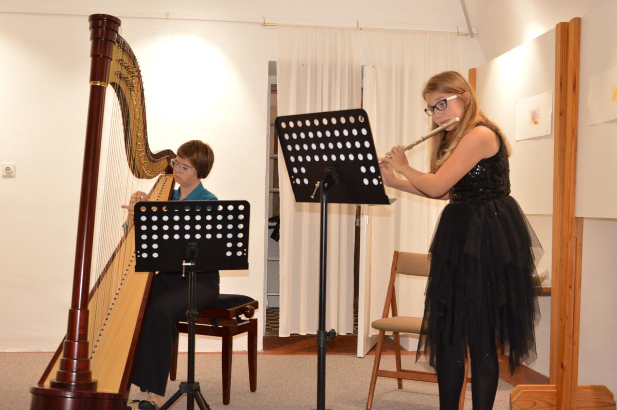 Glasbeni gostji ob otvoritvi razstave sta bili učenki nazarske glasbene šole harfistka Aja in flavtistka Daša Urlep, ki sta v duetu in z izborom skladb navdušili poslušalce. Ob koncu sta na željo obiskovalcev razstave in razstavljavke odigrali tudi dodatek. Razstavo je odprl Jože Remšak – Zotler.
