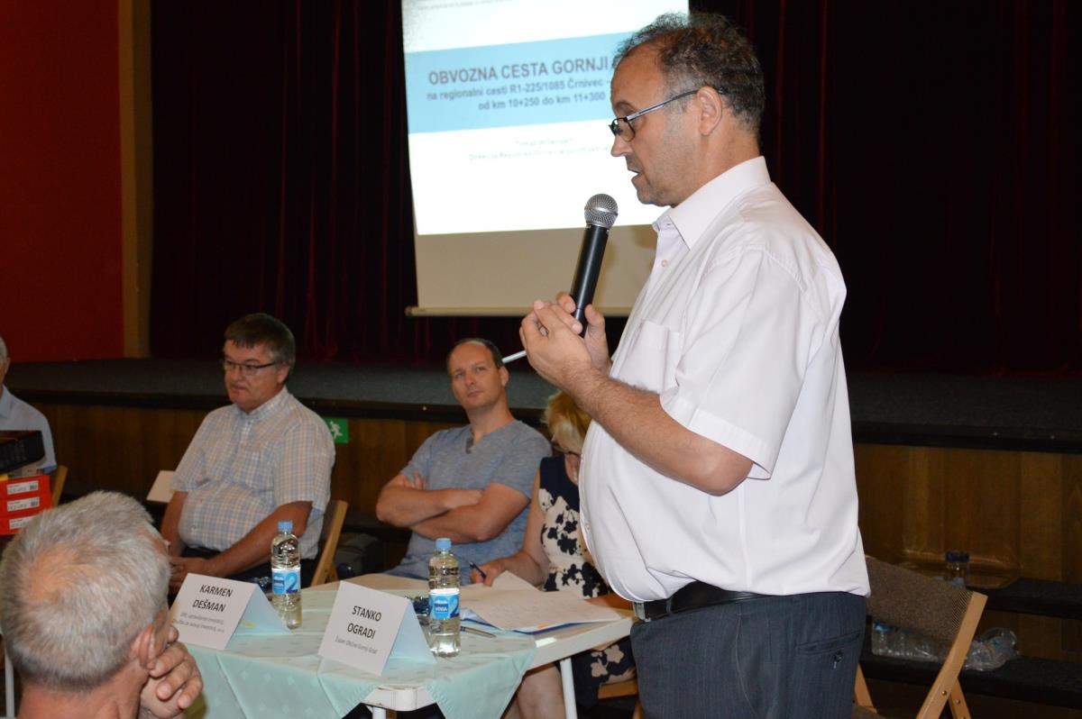 V uvodu je vse prisotne pozdravil župan Stanko Ogradi in predstavil predstavnike Direkcije RS za infrastrukturo, ki je investitor projekta, projektante in ostale goste. Tomaž Willenpart z direkcije je predstavil projekt, ki je bil v državni proračun uvrščen v letu 2007. Projektna dokumentacija je bila dokončana letos, gradnja pa je predvidena v letih 2020 in 2021. Vrednost projekta je dobra dva milijona in pol evrov. Projekt so po besedah Willenparta želeli predstaviti zainteresirani javnosti, saj je informiranje le-te zelo pomembno. Poleg tega želijo pravočasno urediti vse, kar se tiče odkupa zemljišč, saj je gornjegrajska obvoznica drugi projekt po vrsti, ki ga mislijo izvesti v Savinjski regiji.