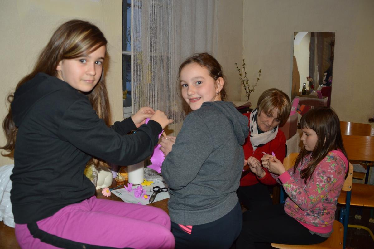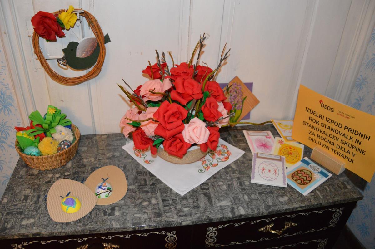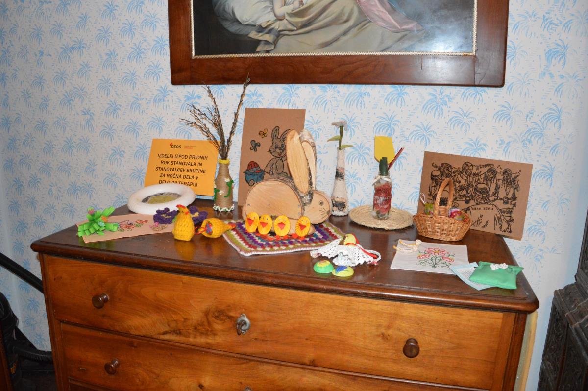 V sklop velikonočnega dogajanja so v zavodu pripravili tudi delavnice, in sicer peke potice, izdelave butaric in izdelava pirhov s pomočjo servietne tehnike. Delavnico peke potic je vodil Janez Železnik, z udeleženkami pa so v stari krušni peči spekli orehovo, lešnikovo in korenčkovo potico. Poudarek na delavnici je bil dan pripravi testa in nadeva. Pred cvetno nedeljo so izdelovali butare, mlajše udeleženke pa so jih okrasile s cvetjem iz krep papirja. Rožice so se naučile izdelati same. Zadnja delavnica pred veliko nočjo pa je bila namenjena izdelavi pirhov s pomočjo servietne tehnike, delavnico je vodila Zdenka Zakrajšek.