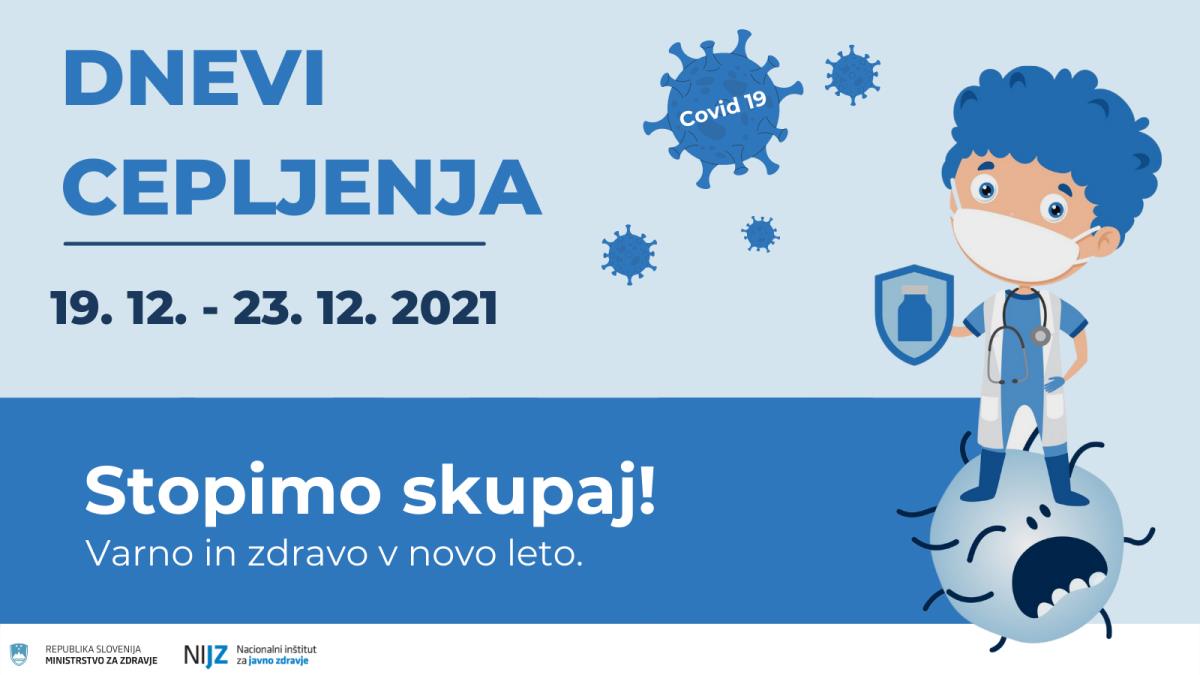 V tednu od 19. 12. 2021 do 23. 12. 2021 bo Ministrstvo za zdravje skupaj z lokalnimi skupnostmi intenzivno izvajalo cepljenje na terenu v okviru akcije »DNEVI CEPLJENJA«. Termini celjenja v Zgornjesavinjski dolini so navedeni v prilogi.